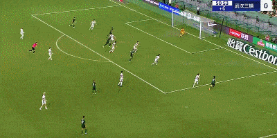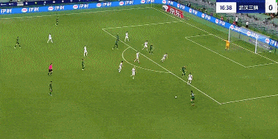 第17分钟,国安错失良机,张玉宁近距离头球攻门偏出底线。